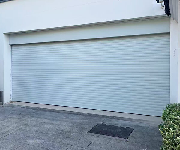 Roll-up garage doors are typically made of aluminum slats that coil neatly above the doorway, similar to a rolling shutter.